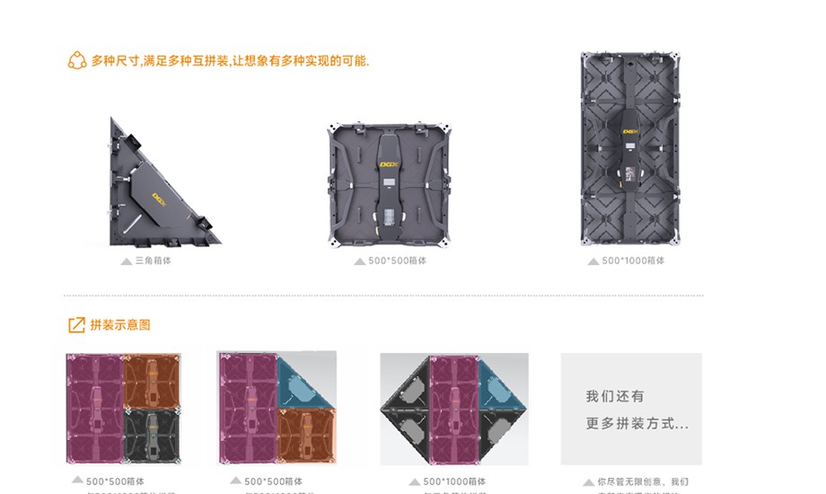 多種拼裝方式,可吊裝、落地、壁掛、平躺(地磚);可直拼弧拼等;