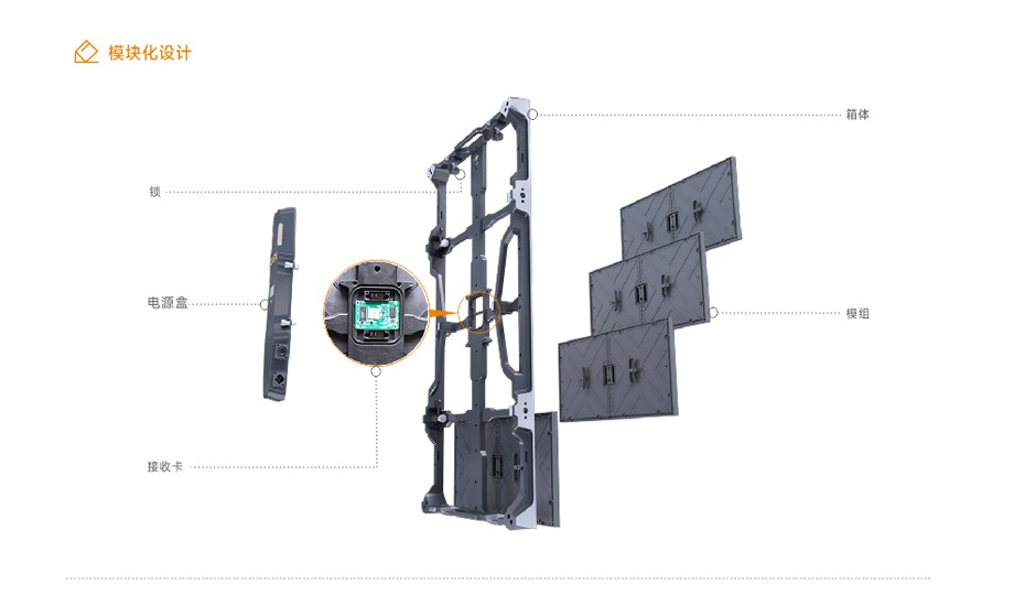 屏體各大部件采用模塊化設(shè)計,使用更加安全,可熱拔插,維護更加簡單;
